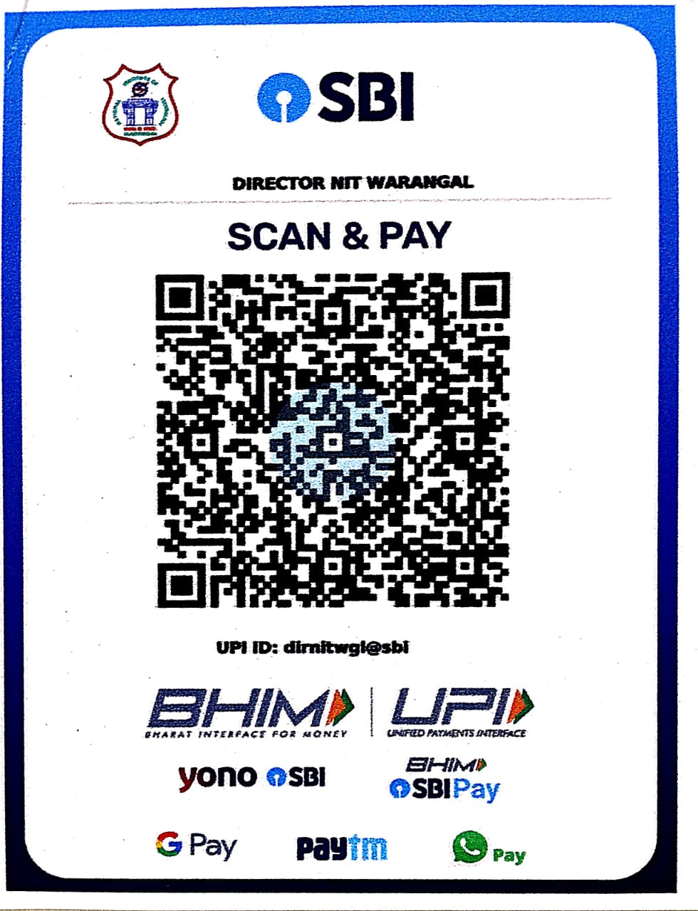 | Bank and Branch | State Bank of India, NIT Warangal Branch |